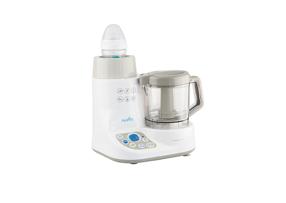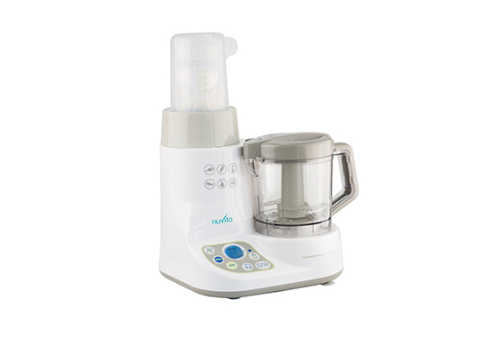 Piccolo, salvaspazio ed utile nel tempo, a partire dalla nascita fino a quando il bambino potrà mangiare lo stesso menù di tutta la famiglia. Inizialmente, durante l’allattamento la funzione scaldabiberon permette di scongelare e scaldare con acqua a “bagno-maria” anche il latte materno, preservandone i principi nutritivi. Utilizzando il coperchio speciale è possibile sterilizzare a vapore i biberon, le tettarelle, il succhietto o gli accessori del tiralatte. Per il periodo dello svezzamento è utile per tritare, frullare omogeneizzare e cuocere frutta, verdura, carne e pesce. Il display digitale permette di scegliere facilmente ogni singola azione tenendo semplicemente premuta l’icona o impostare automaticamente tempi da 5 a 30 minuti nel caso di cottura. Con la funzione “Cuoci & Frulla” si prepara facilmente la pappa e si risparmia tempo: basta inserire gli ingredienti a pezzettini, impostare la cottura per ottenere automaticamente un cremoso piatto saporito per i primi pranzetti. La forma particolare delle lame in acciaio omogeneizza gli ingredienti senza formare bolle d’aria, un accorgimento importante per evitare le coliche gassose. Il bicchiere ha una capacità di 500 ml; serbatoio per l’acqua è in ceramica, facile da pulire per togliere traccia di eventuali depositi di calcare.