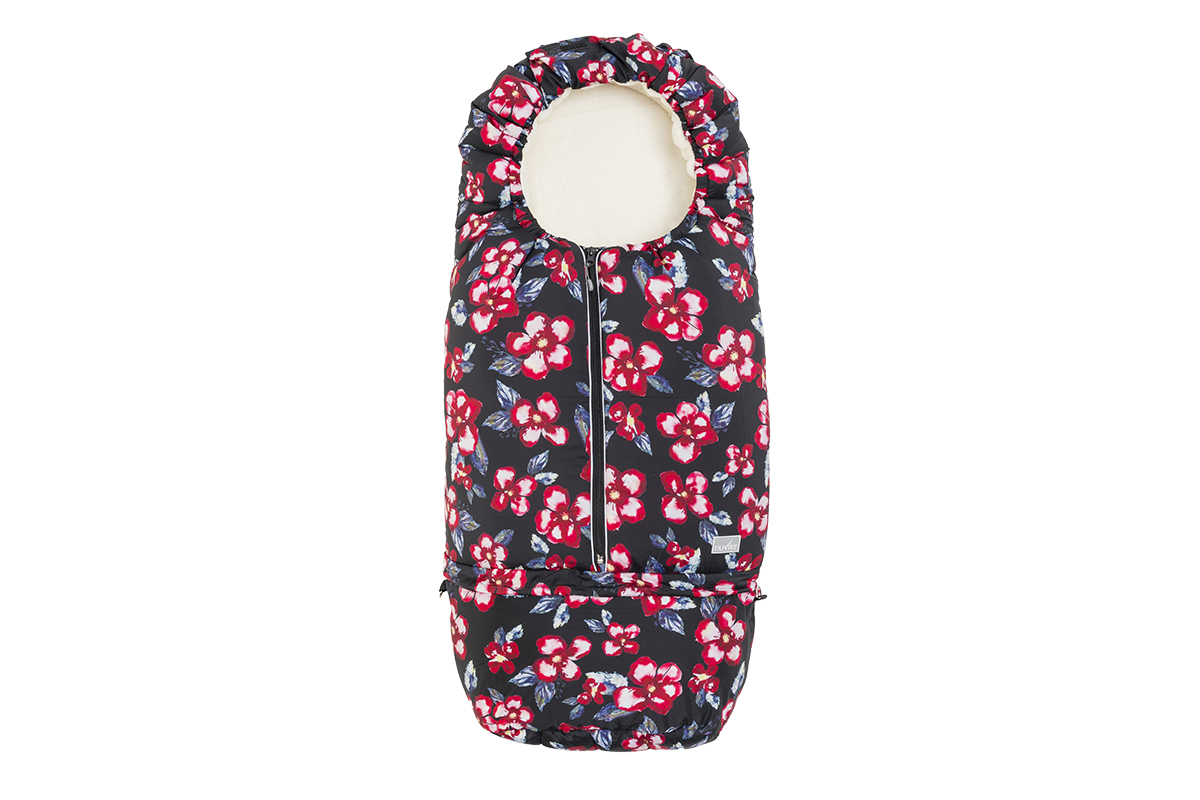 NUVITA Sacco universale per passeggino, ovetto, seggiolino auto e carrozzina per tutte le età | Junior Carry On 9845 | VINKA BLOSSOM BLACK/RED