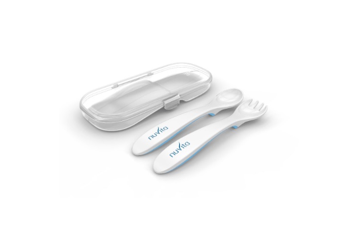 Set di posate ideali per incoraggiare il bambino a mangiare da solo. La forma arrotondata è sicura e maneggevole ed il manico è antiscivolo e con una impugnatura ottimale per le manine piccole ed ancora inesperte. Il retro ha uno speciale supporto igienico per poterle appoggiare evitando il contatto della parte che entra in bocca con superfici a rischio di germi e batteri. L’astuccio da viaggio è comodo per poter utilizzare le posate anche per i pasti fuori casa e per riporle dopo l’utilizzo senza sporcare. Lavabili in lavastoviglie.