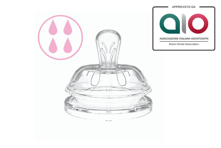 L’innovativa tettarella è stata progettata non solo per assomigliare ma soprattutto per comportarsi come il tuo seno durante la poppata. La speciale forma piatta ed allungata e la base concava permettono alla tettarella di muoversi su e giù, allungarsi e contrarsi proprio come il tuo capezzolo durante la poppata. Inoltre, la superficie ampia e la finitura “skin-like” effetto pelle donano al tuo bambino la confortevole sensazione di essere a contatto con il tuo seno. In questo modo faciliti l’alternanza seno-biberon senza interrompere l’abitudine all’allattamento naturale