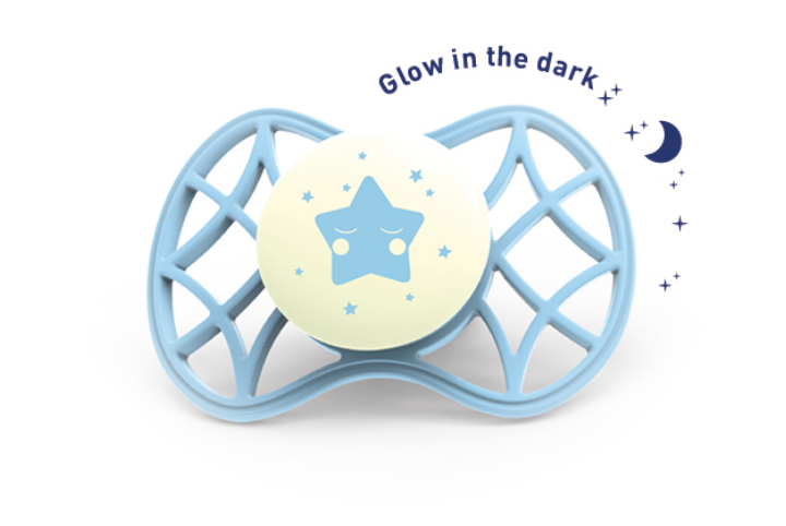 Il succhietto Air. 55 Cool! con tettarella simmetrica è ideale per accompagnare il tuo bambino nei suoi primi mesi di vita. Lo speciale scudo composto dal 55% di aria lascia la pelle intorno alla bocca libera di respirare evitando eventuali ristagni di saliva che possono provocano fastidiose irritazioni della pelle. La particolare traspirabilità aiuta inoltre il tuo bimbo a respirare più facilmente nel caso abbia l’abitudine di respirare con la bocca o abbia il nasino chiuso. Ultra leggeri sia come peso che come sensazione di utilizzo sono stati progettati per ridurre al massimo la percezione e quindi l’abitudine al suo utilizzo. Ciò sarà di grande aiuto quando il tuo bambino dovrà abbandonare definitivamente il succhietto. La forma della tettarella, appositamente progettata, favorisce il corretto sviluppo della bocca riducendo il rischio di disallineamento dei denti e danni al palato. La forma sottile alla base asseconda la naturale chiusura della bocca assicurando il corretto posizionamento della lingua ed il naturale sviluppo del palato. Composta da silicone antiallergico con finitura skin-like ad effetto pelle, la tettarella è molto simile al tuo capezzolo ed offre un maggior effetto calmante e rassicurante.