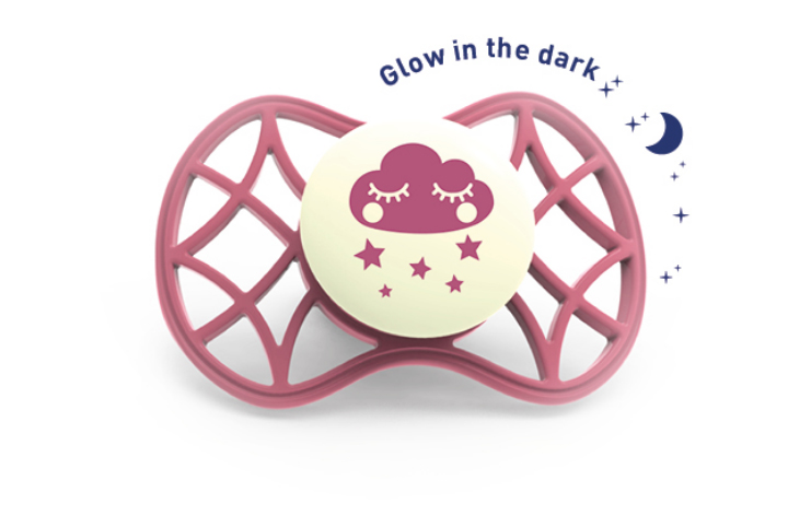 Il succhietto Air. 55 Cool! con tettarella simmetrica è ideale per accompagnare il tuo bambino nei suoi primi mesi di vita. Lo speciale scudo composto dal 55% di aria lascia la pelle intorno alla bocca libera di respirare evitando eventuali ristagni di saliva che possono provocano fastidiose irritazioni della pelle. La particolare traspirabilità aiuta inoltre il tuo bimbo a respirare più facilmente nel caso abbia l’abitudine di respirare con la bocca o abbia il nasino chiuso. Ultra leggeri sia come peso che come sensazione di utilizzo sono stati progettati per ridurre al massimo la percezione e quindi l’abitudine al suo utilizzo. Ciò sarà di grande aiuto quando il tuo bambino dovrà abbandonare definitivamente il succhietto. La forma della tettarella, appositamente progettata, favorisce il corretto sviluppo della bocca riducendo il rischio di disallineamento dei denti e danni al palato. La forma sottile alla base asseconda la naturale chiusura della bocca assicurando il corretto posizionamento della lingua ed il naturale sviluppo del palato. Composta da silicone antiallergico con finitura skin-like ad effetto pelle, la tettarella è molto simile al tuo capezzolo ed offre un maggior effetto calmante e rassicurante.