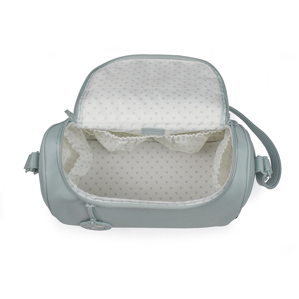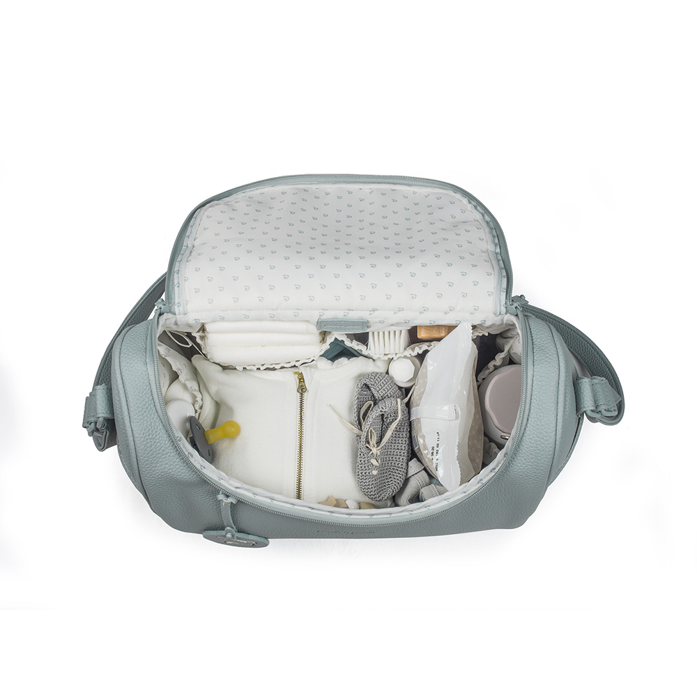 Borsa fasciatoio o borsa per passeggino Yummi verde mint, molto elegante e pratica, per portare tutto quanto serve al tuo bambino. Include maniche lunga per portarla alla spalla e manica corte per appenderla alla carrozzina. Fodera interna con tasche. Si puoÌ lavare a mano o in lavatrice a 30º. I materiali utilizzati sono esenti di coloranti azoici, ftalati e sostanze nocive alla salute. Dimensioni: 35 X 26 X 21 cm. Borse cambio Pasito a pasito.