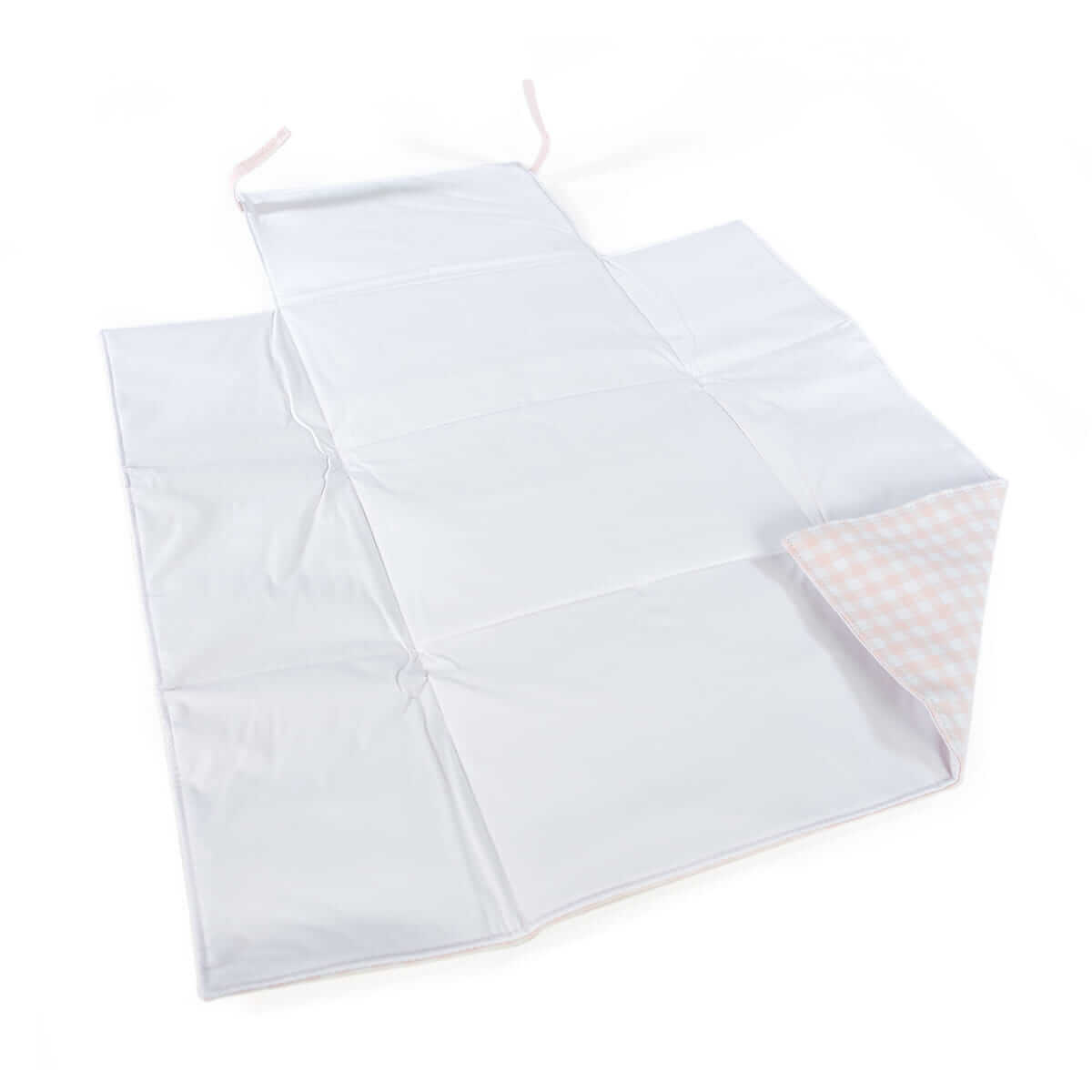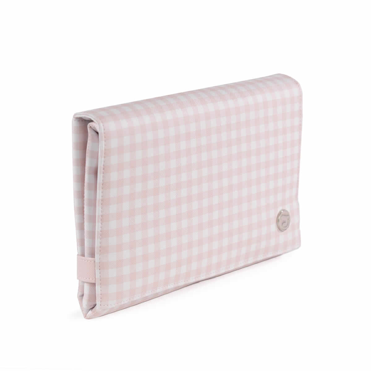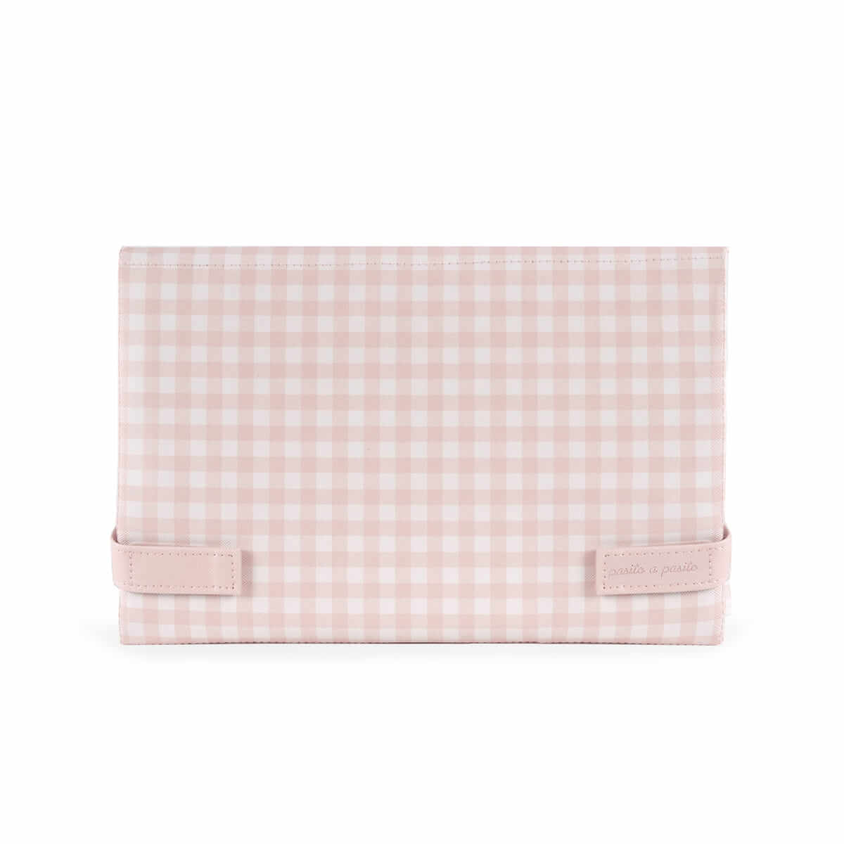 Fasciatoio Together by Pasito a pasito realizzata in similpelle stampata con quadretti vichy rosa e bianchi. Comodissimo e facile da trasportare, poiché è presentato in formato pieghevole. Si può lavare a mano o in lavatrice a 30º. I materiali utilizzati sono esenti di coloranti azoici, ftalati e sostanze nocive alla salute.